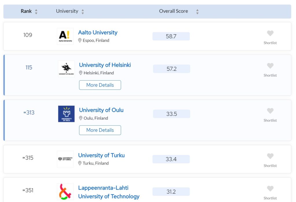 دانشگاه هلسینکی بر اساس رتبه بندی آکادمیک دانشگاههای جهان در رتبه 115 بهترین دانشگاههای دنیا قرار داشته و در بین بهترین دانشگاههای فنلاند رتبه اول را به خود اختصاص داده است. دانشگاه هلسینکی در دانشکدههای مختلف خود مانند دانشکده حقوق، دانشکده علوم، دانشکده پزشکی، دانشکده داروسازی، دانشکده هنر، علوم اجتماعی و دانشکده زیست و …رشتههای زیادی را ارائه میدهد که بسته به رشته مورد نظر خود میتوانید برای عنوان مناسبی درخواست دهید.